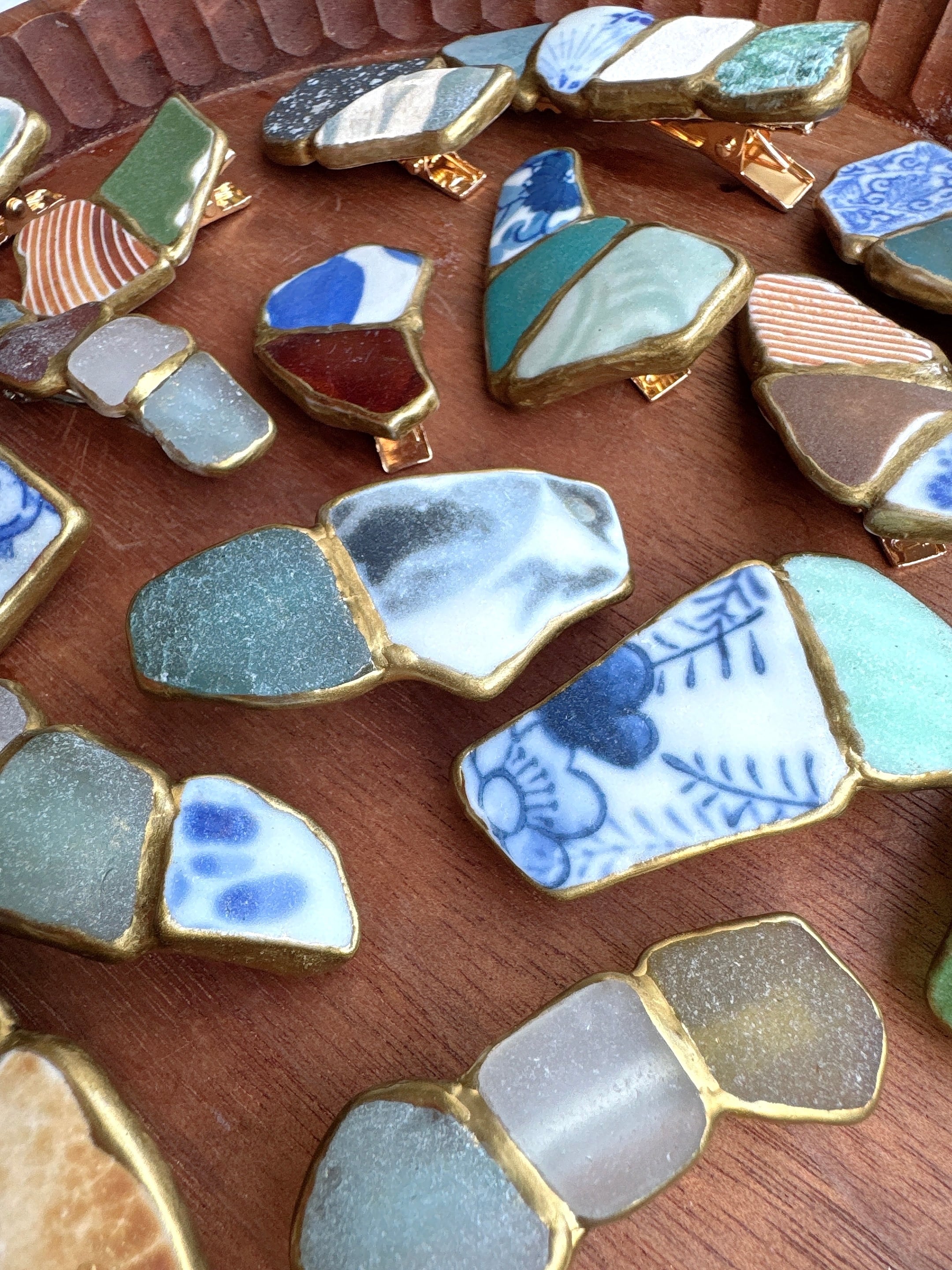 ■シー陶器の金継ぎヘアバレッタ 4連のご紹介です☆