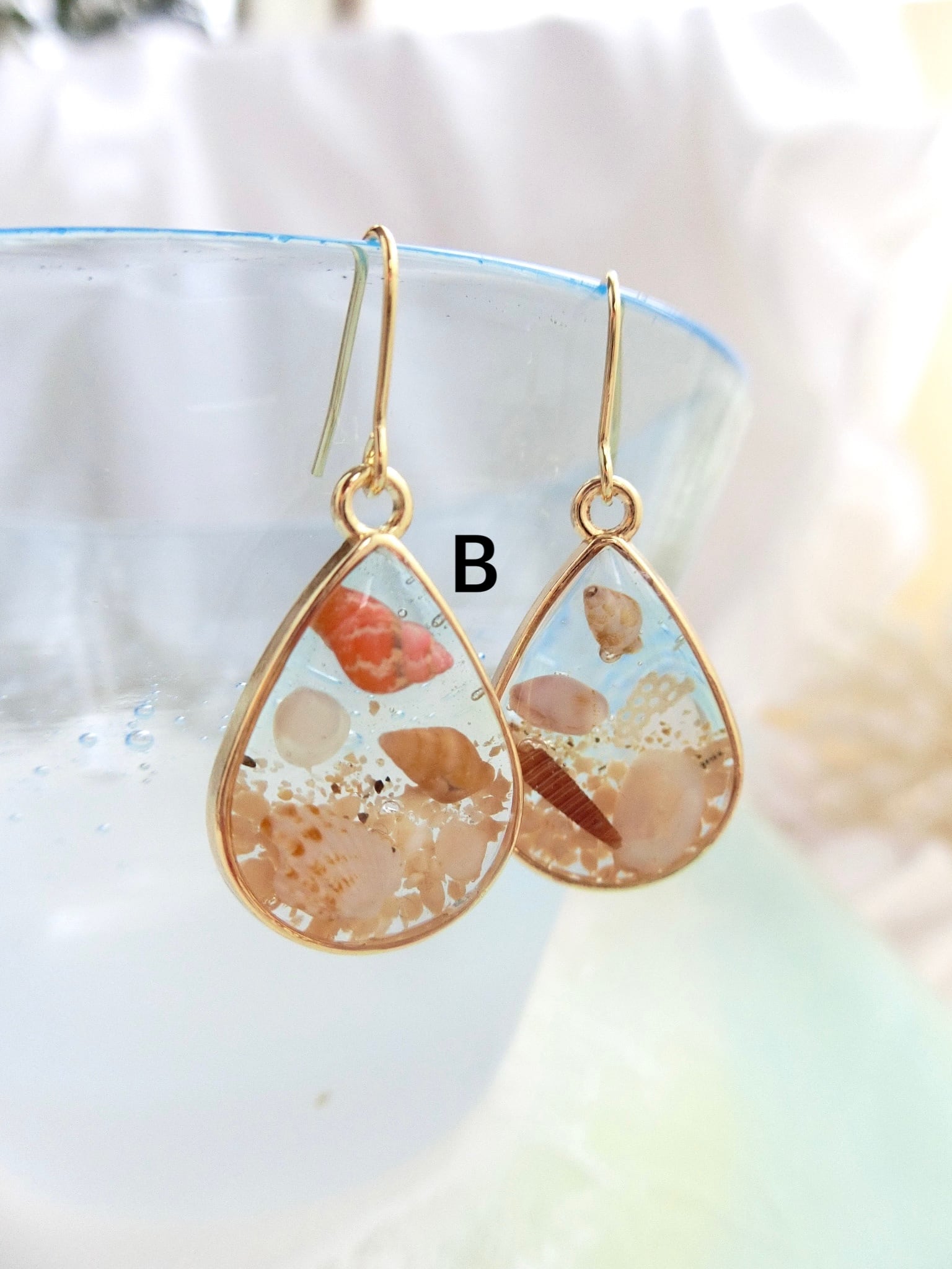 星の砂や極小の貝殻を詰め込んだ小さな海のピアスです⭐︎