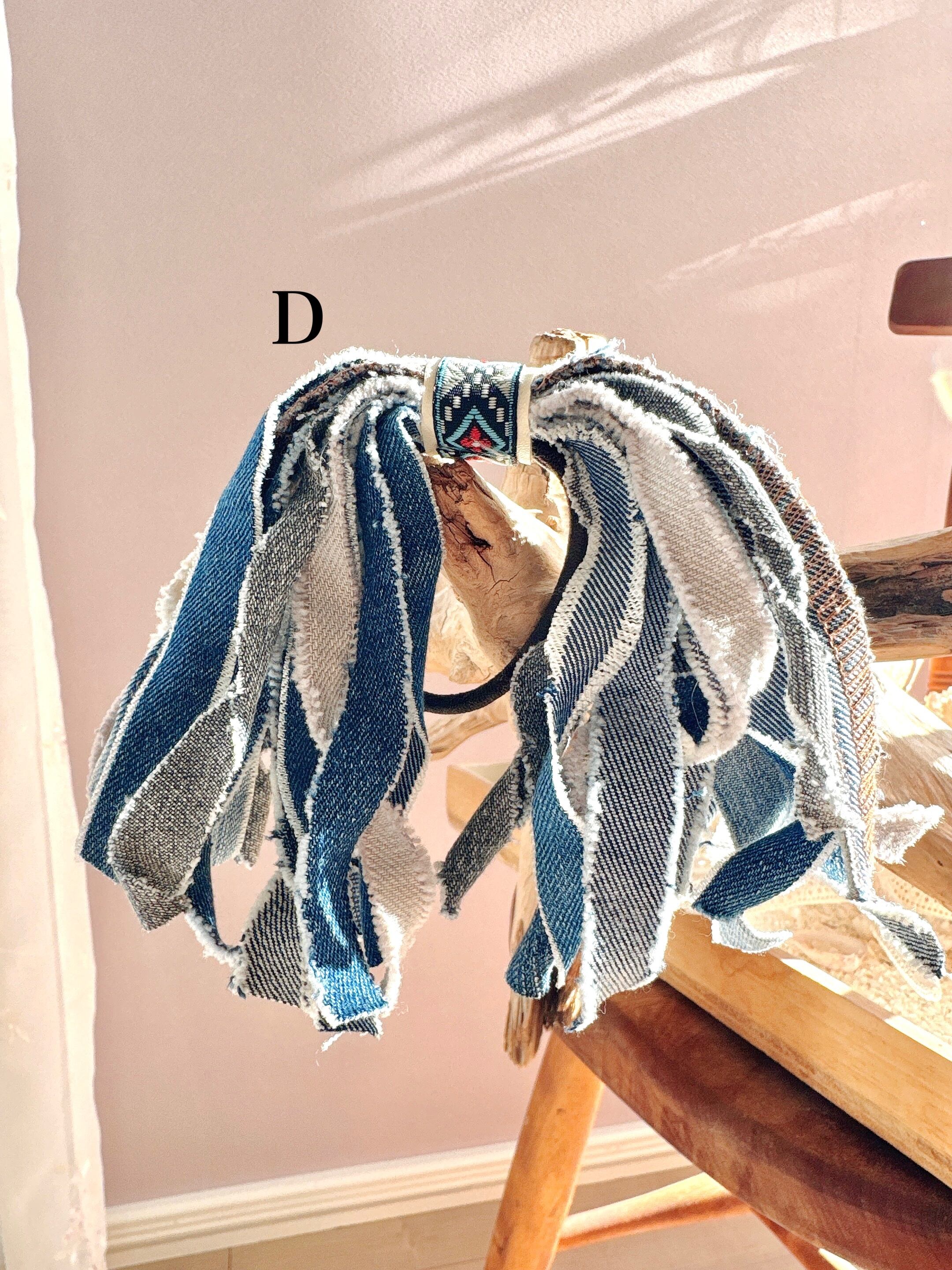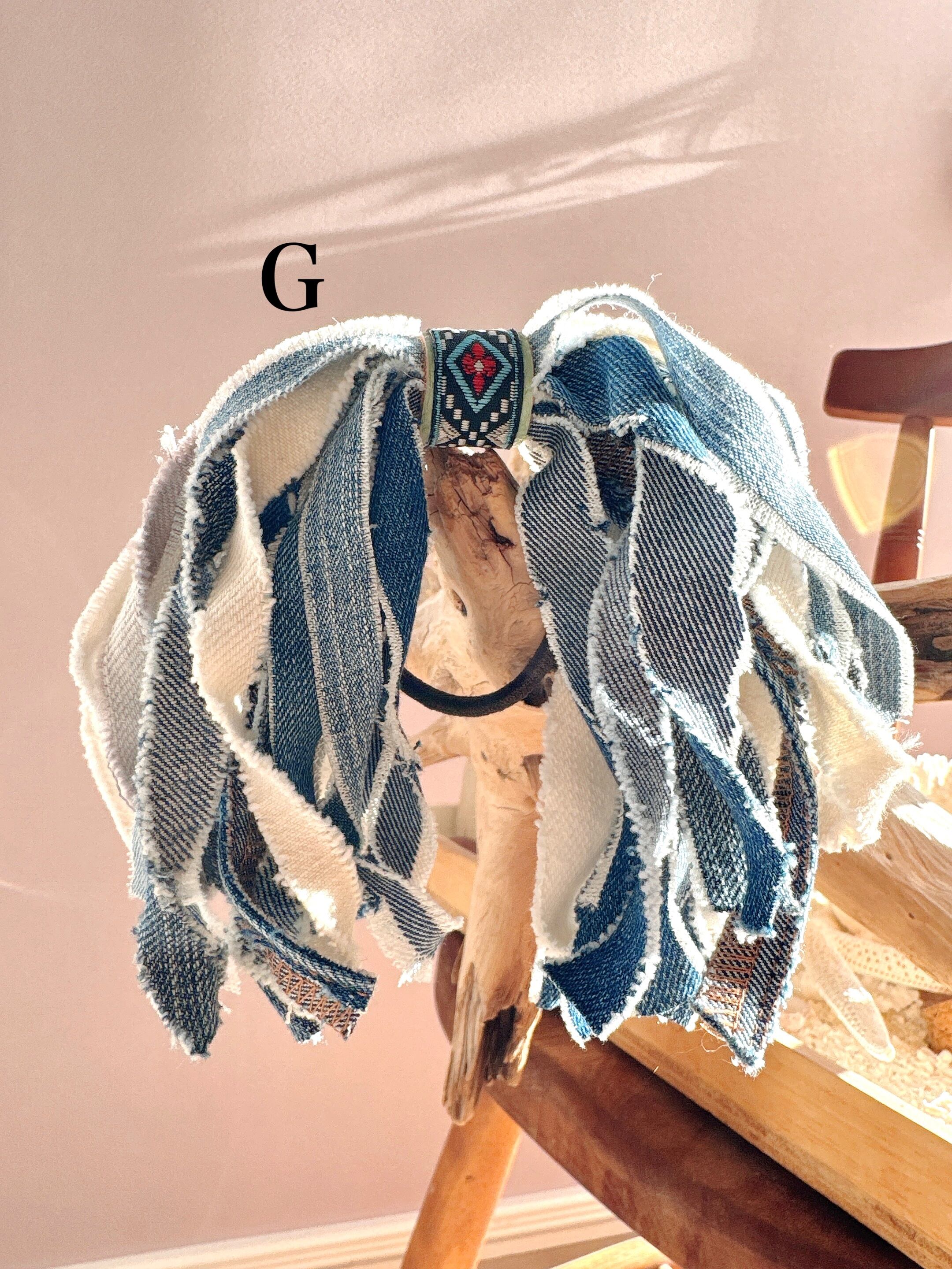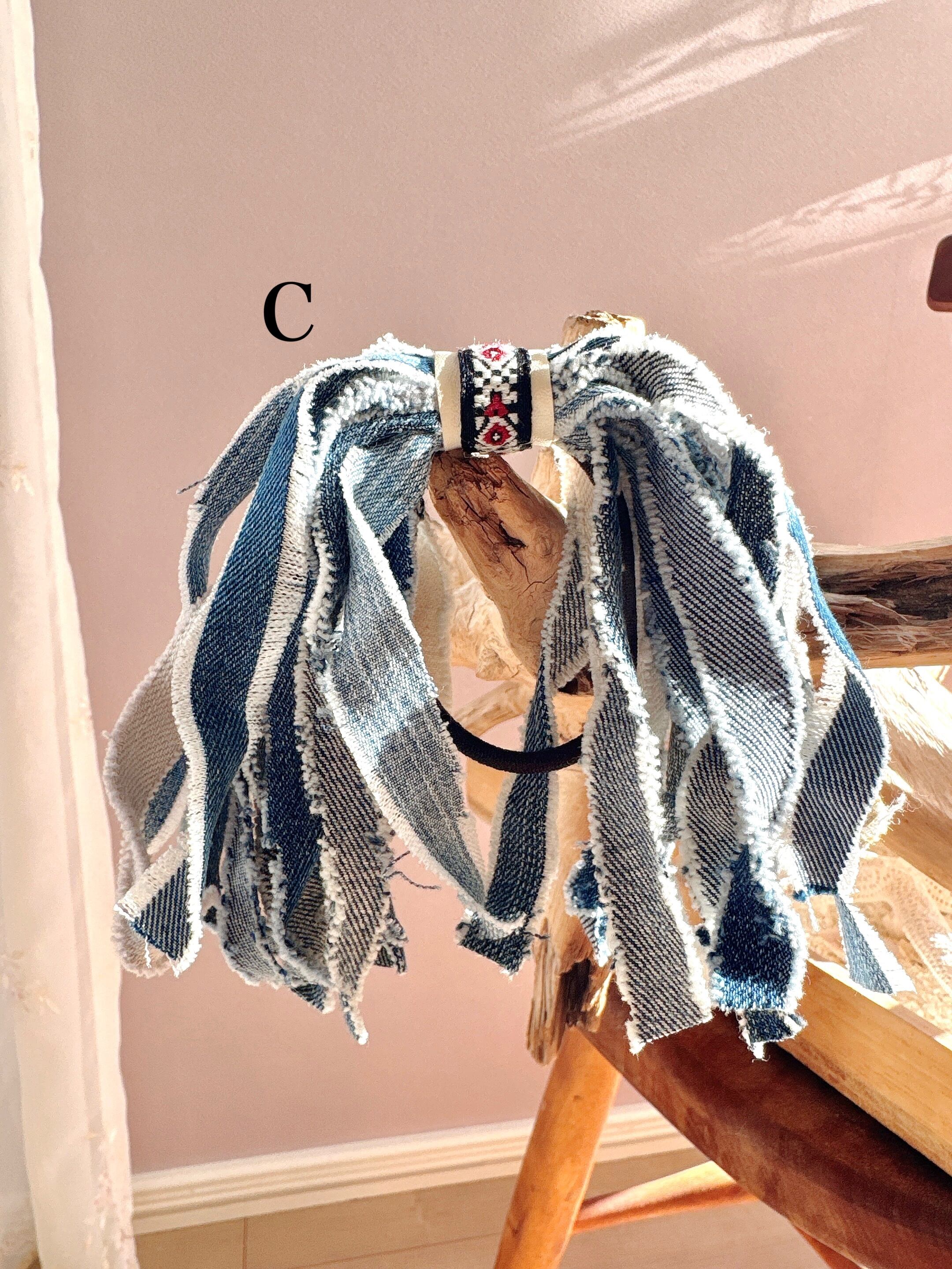 様々な種類のデニムを加工したリボンの様なヘアゴムです⭐︎