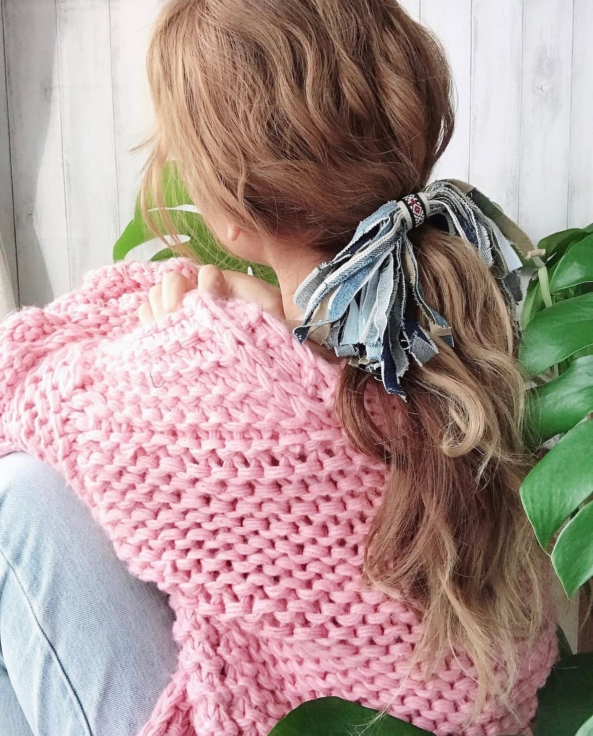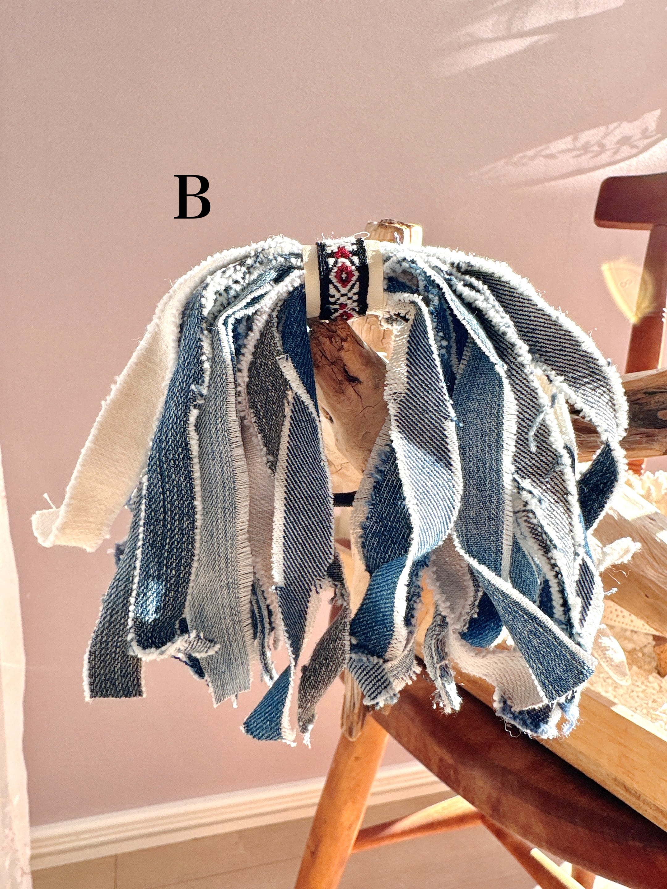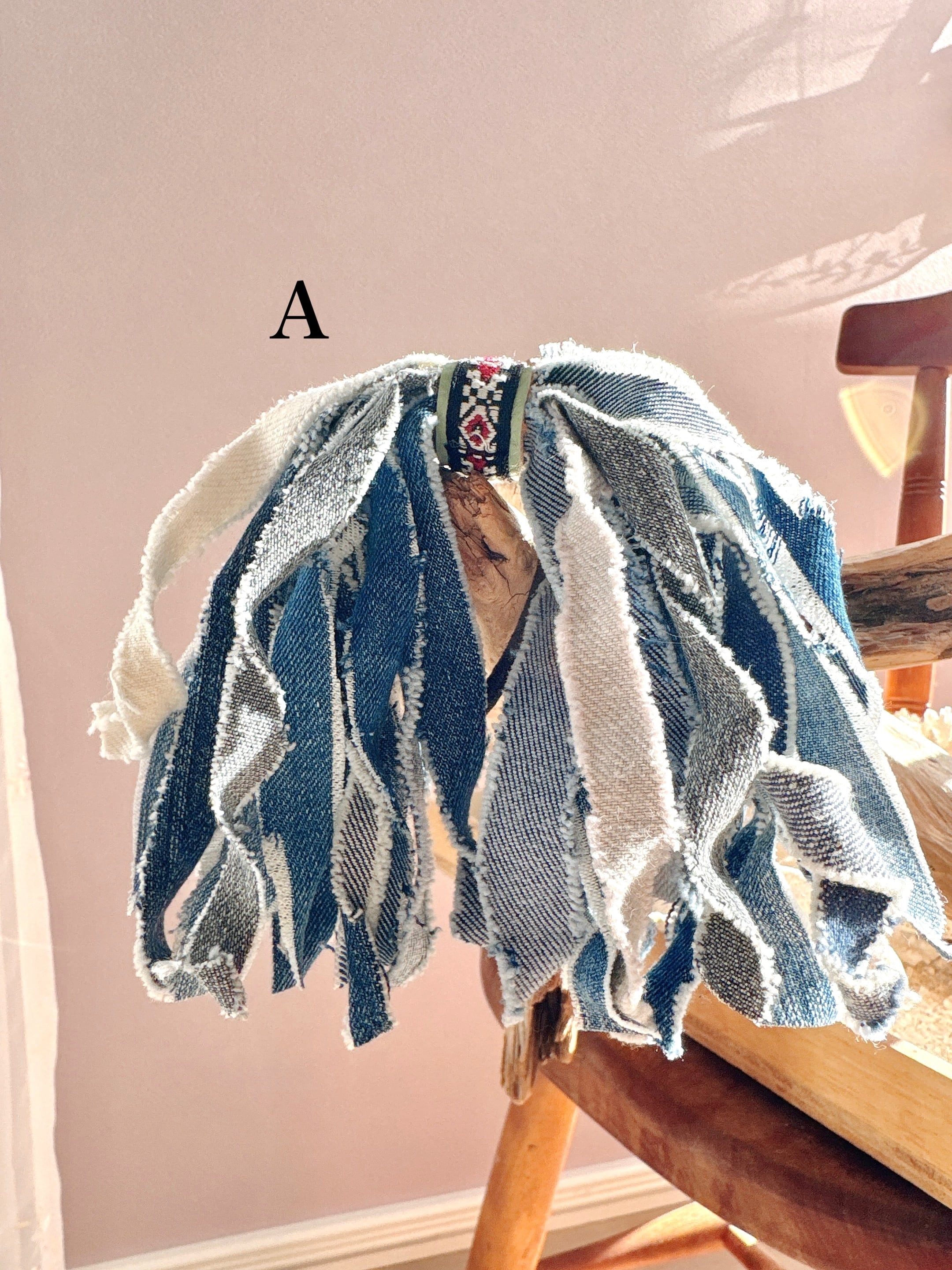 様々な種類のデニムを加工したリボンの様なヘアゴムです⭐︎