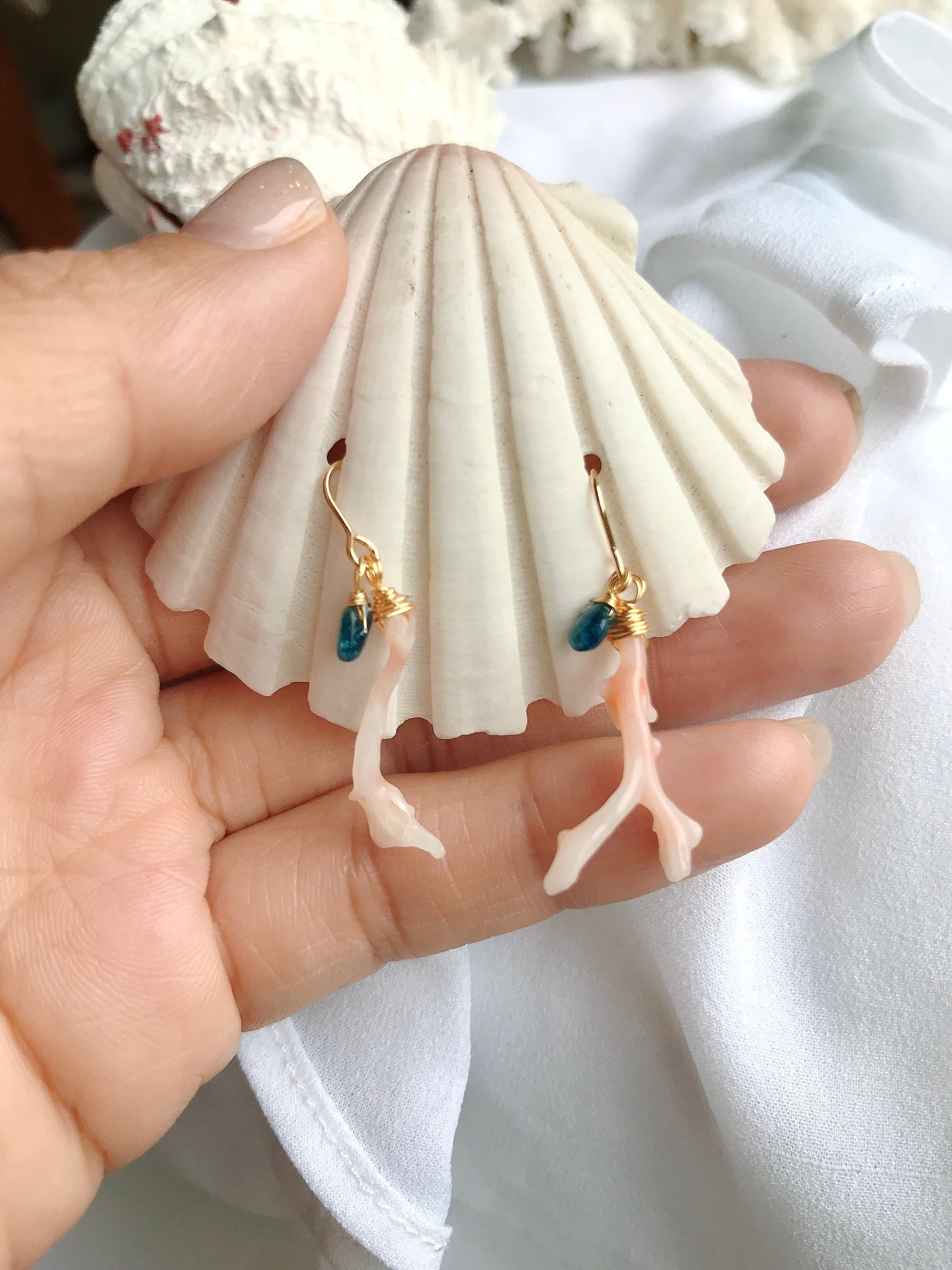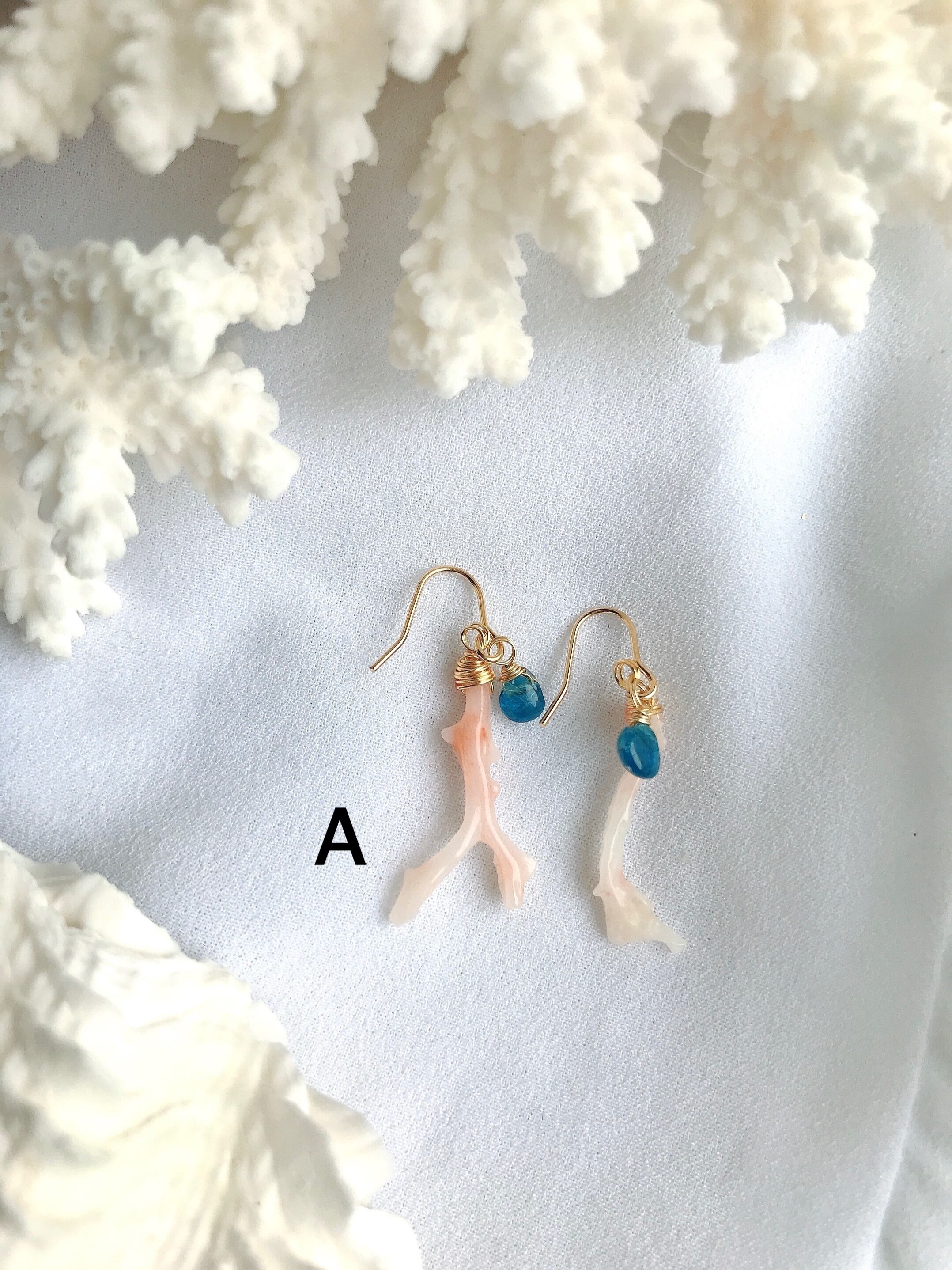 2種 枝珊瑚と極小ストーンのシンプルピアス