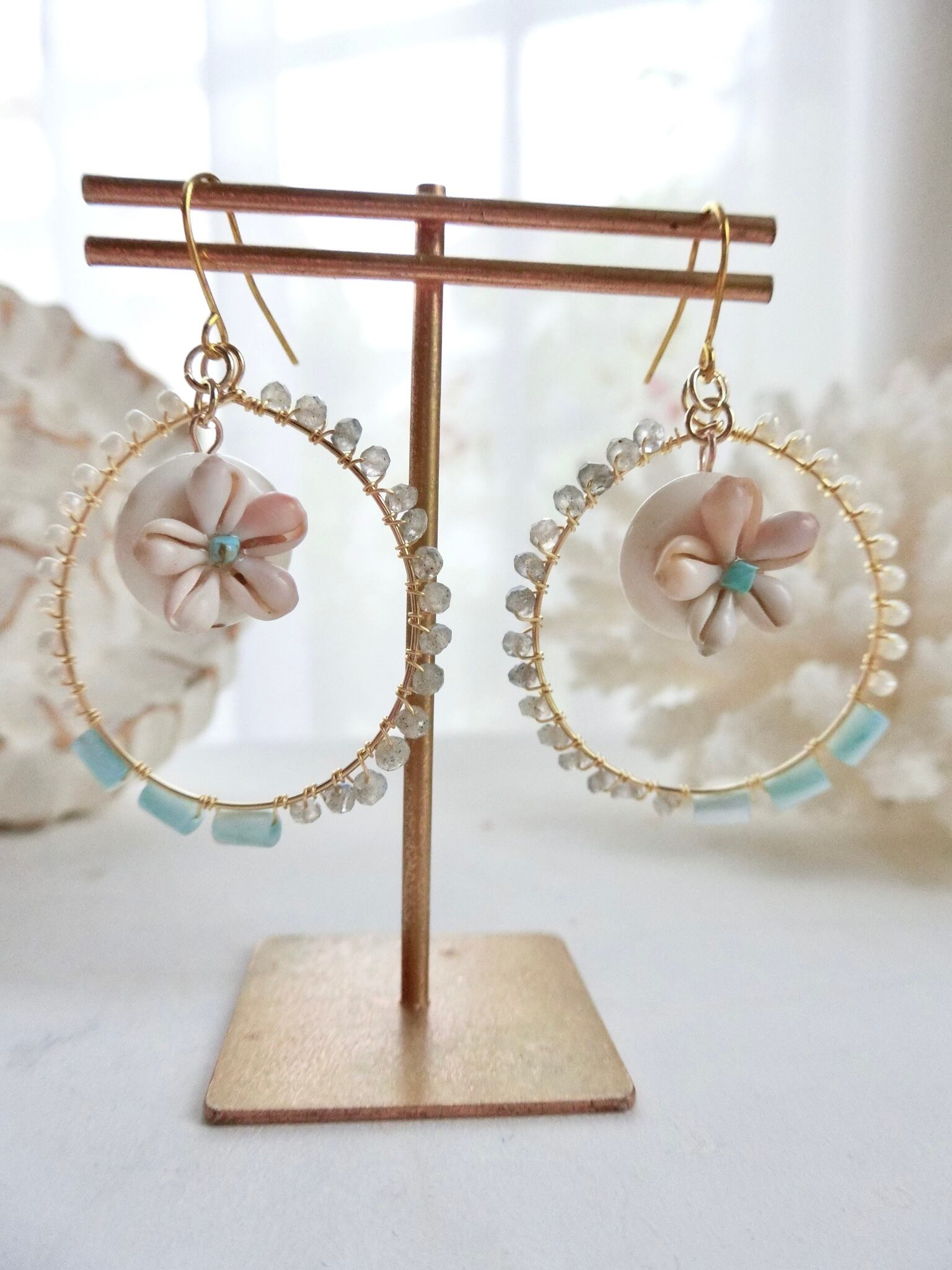 シェルフラワーのフープピアス