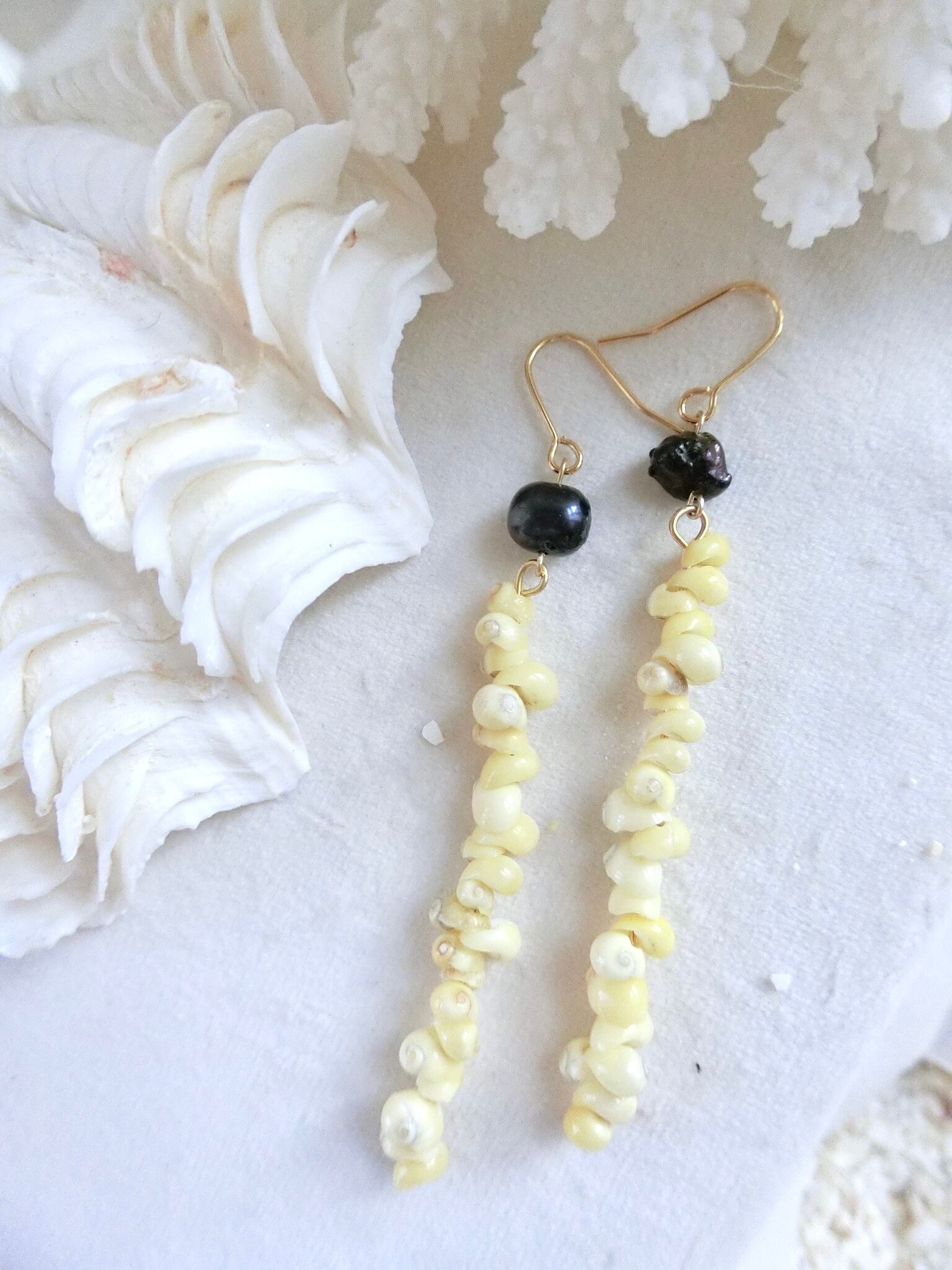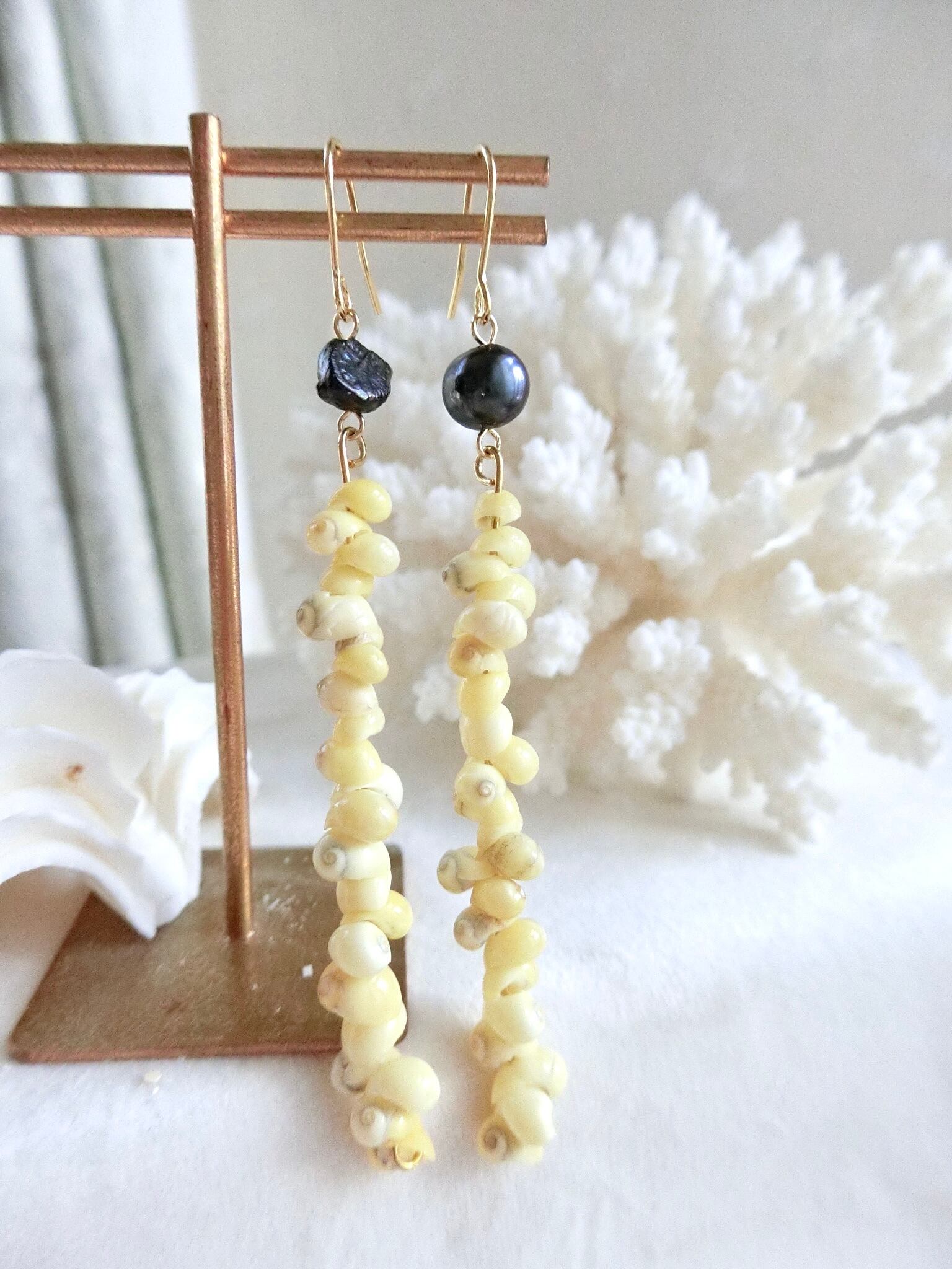 カノコシェルのパールロングピアス