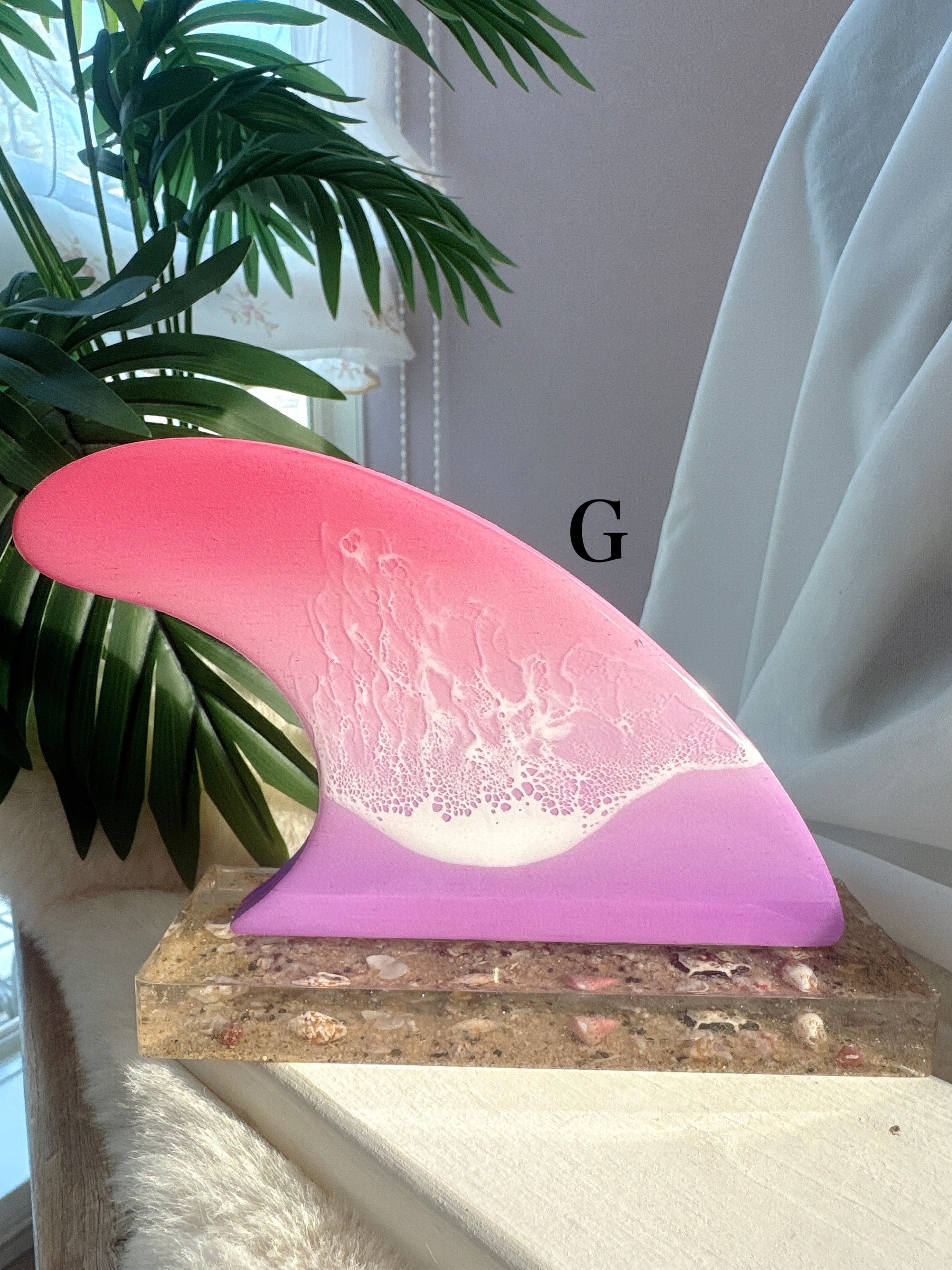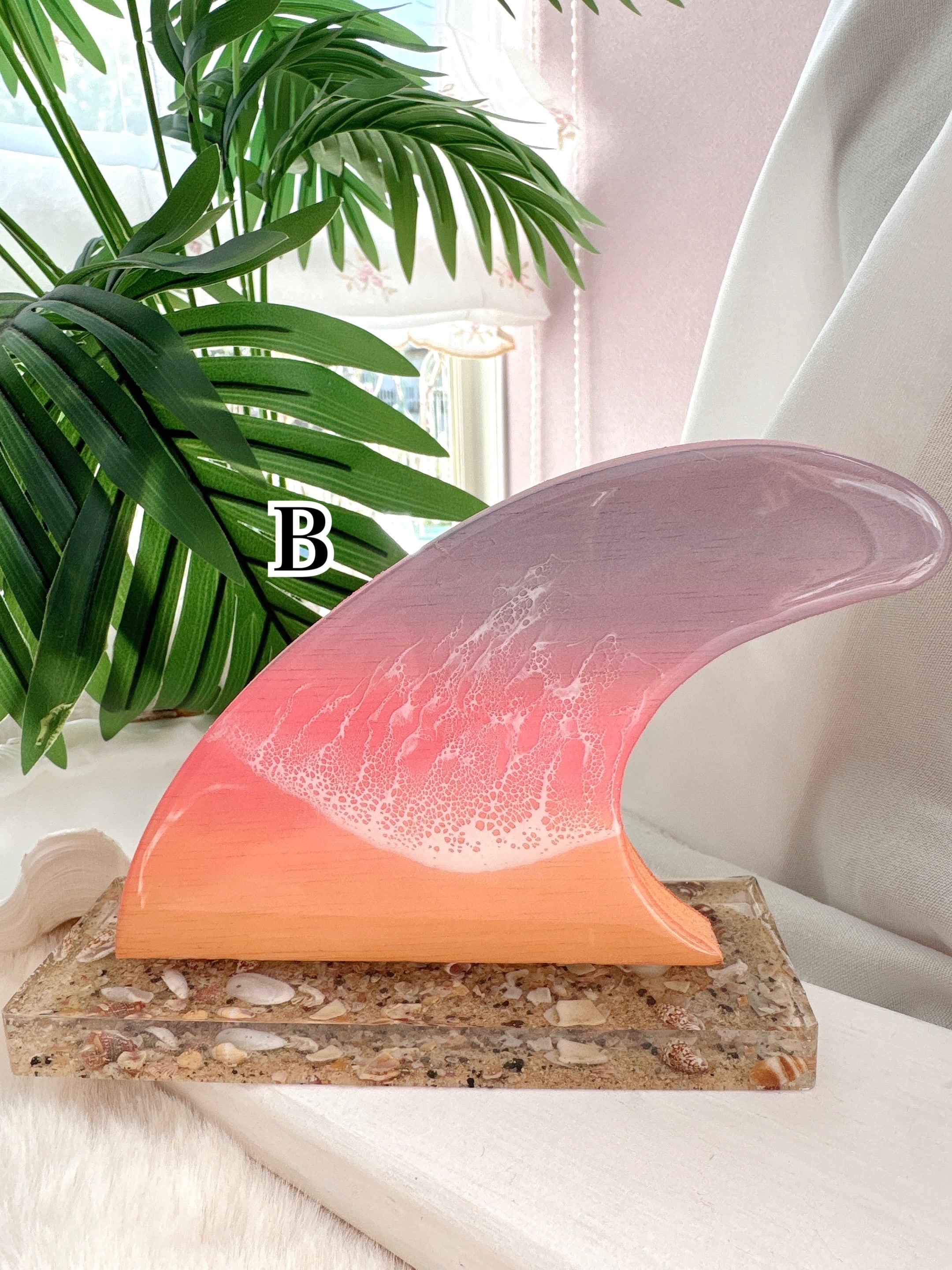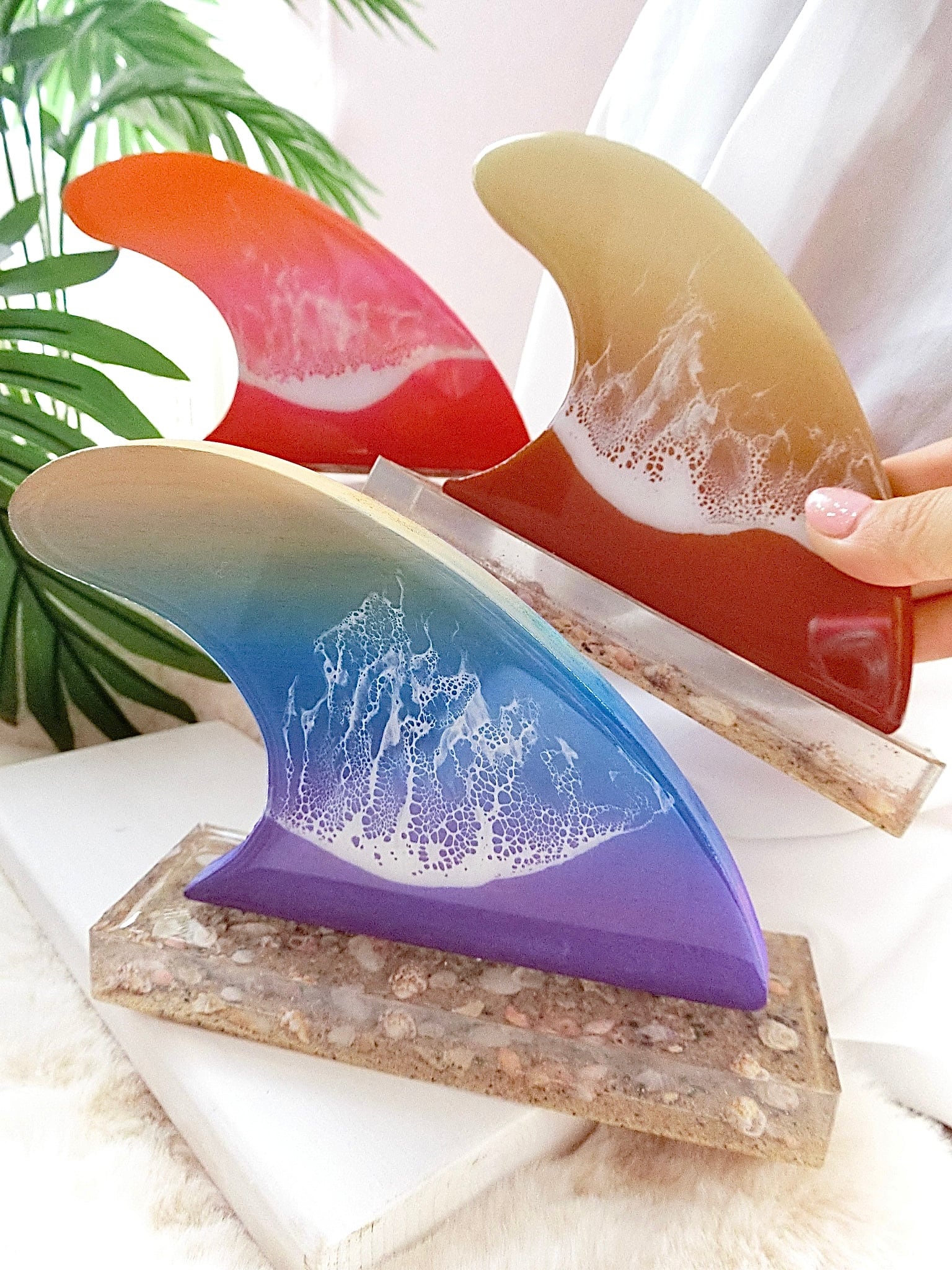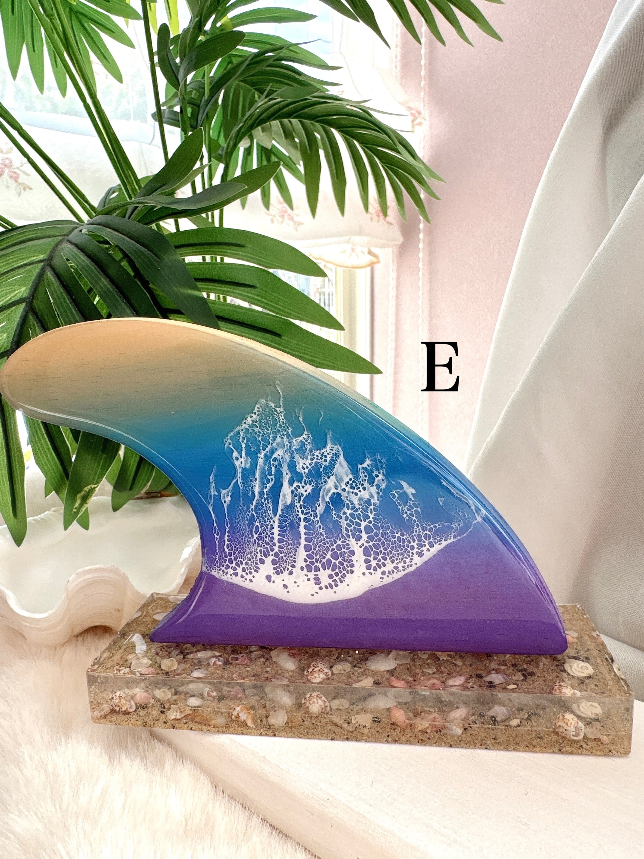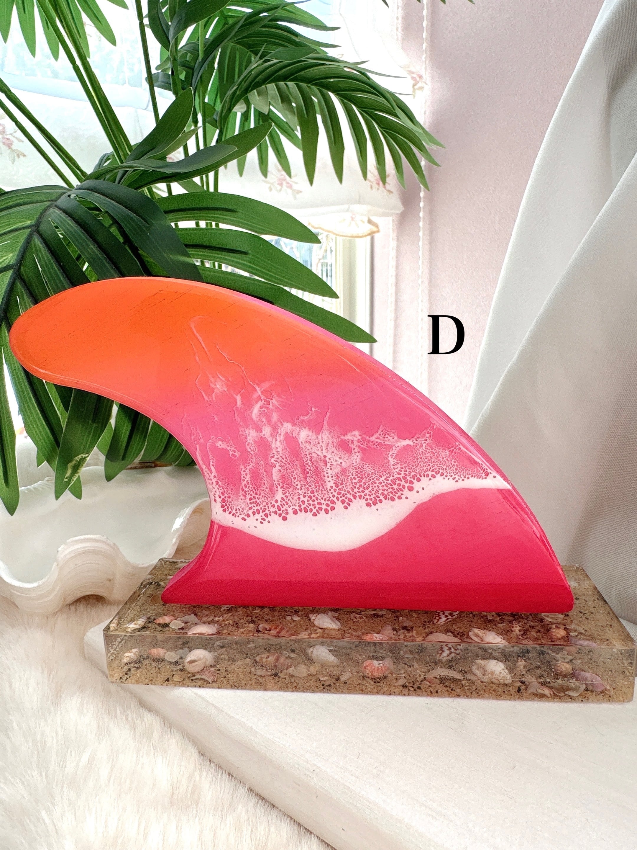 様々な色のグラデーションと、波アートの組み合わせがキュートなフィンモチーフに、