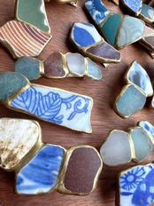シー陶器の金継ぎヘアクリップ 3連