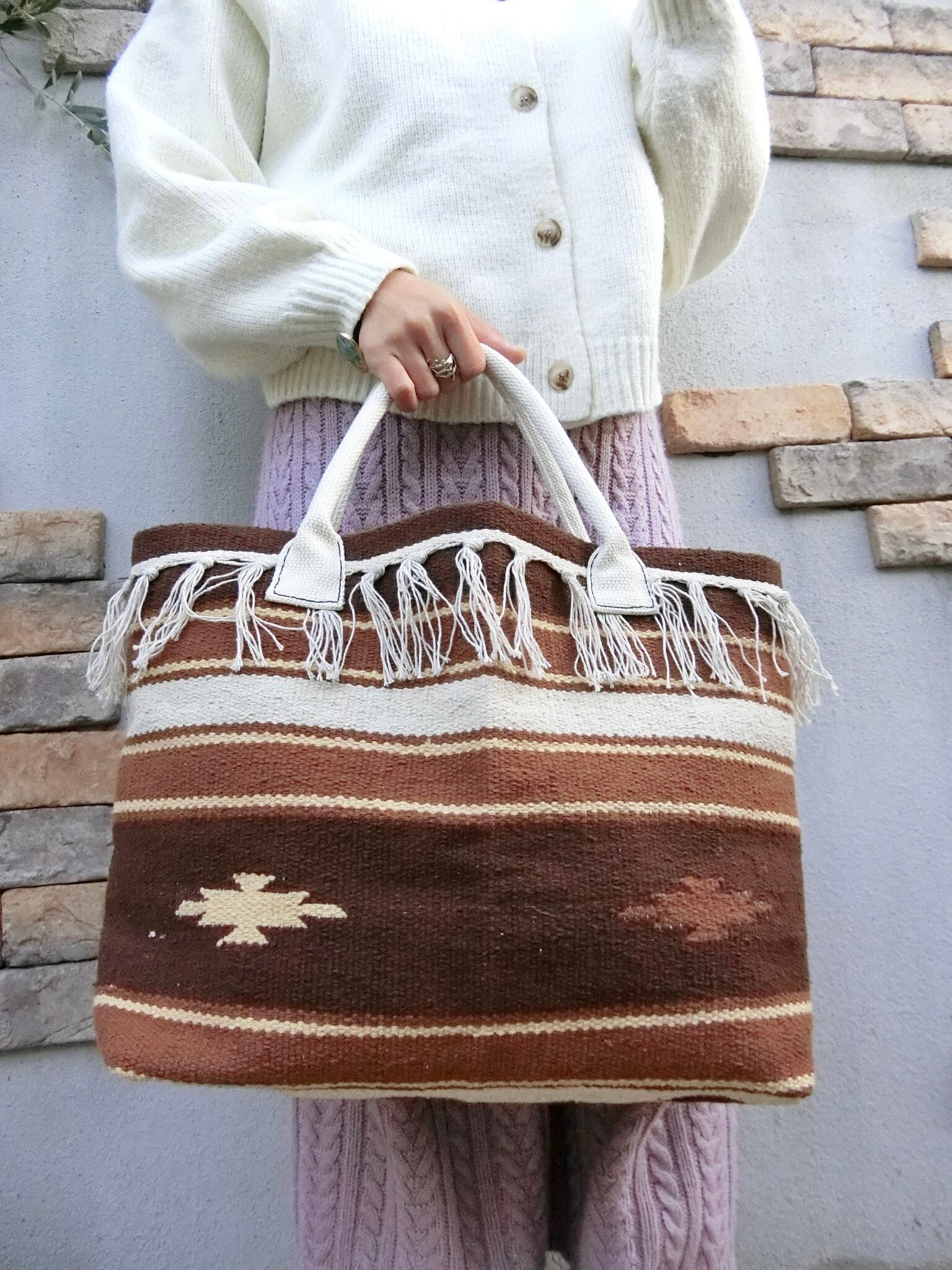 厚手のラグマットを使った大きめサイズのトートバッグです。