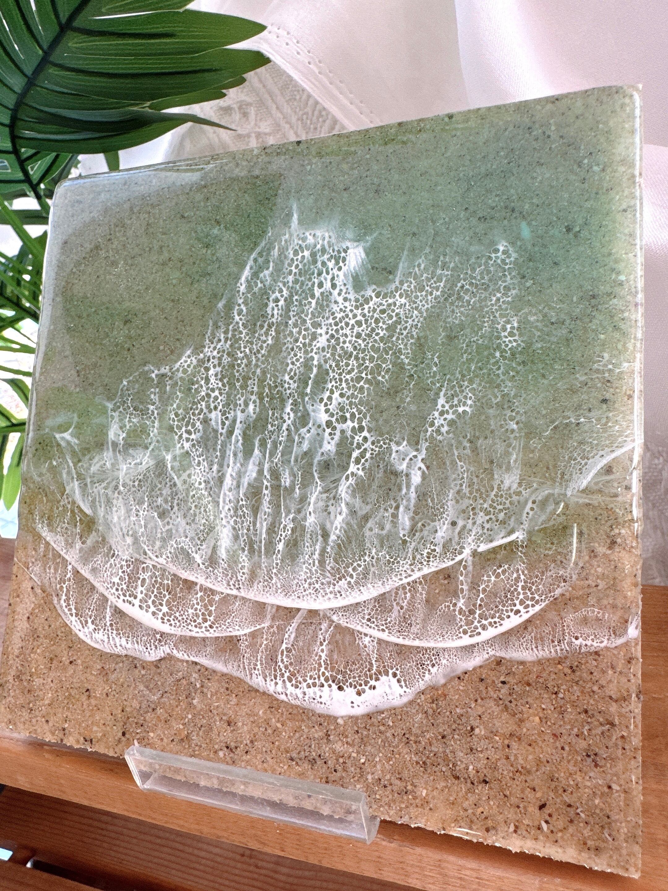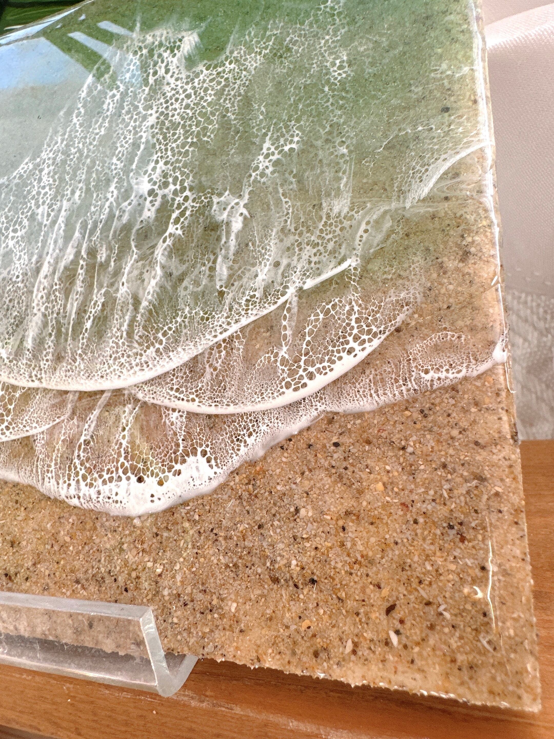 奄美大島の砂をそのまま閉じ込めた透明感のある海レジンアートパネルです。