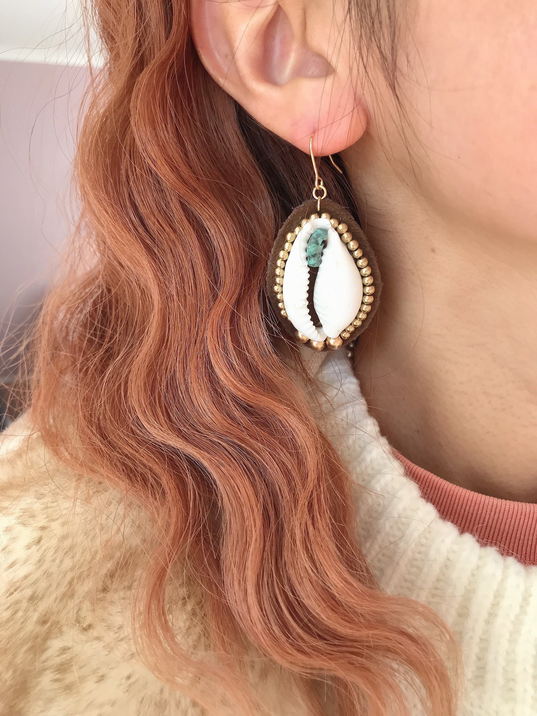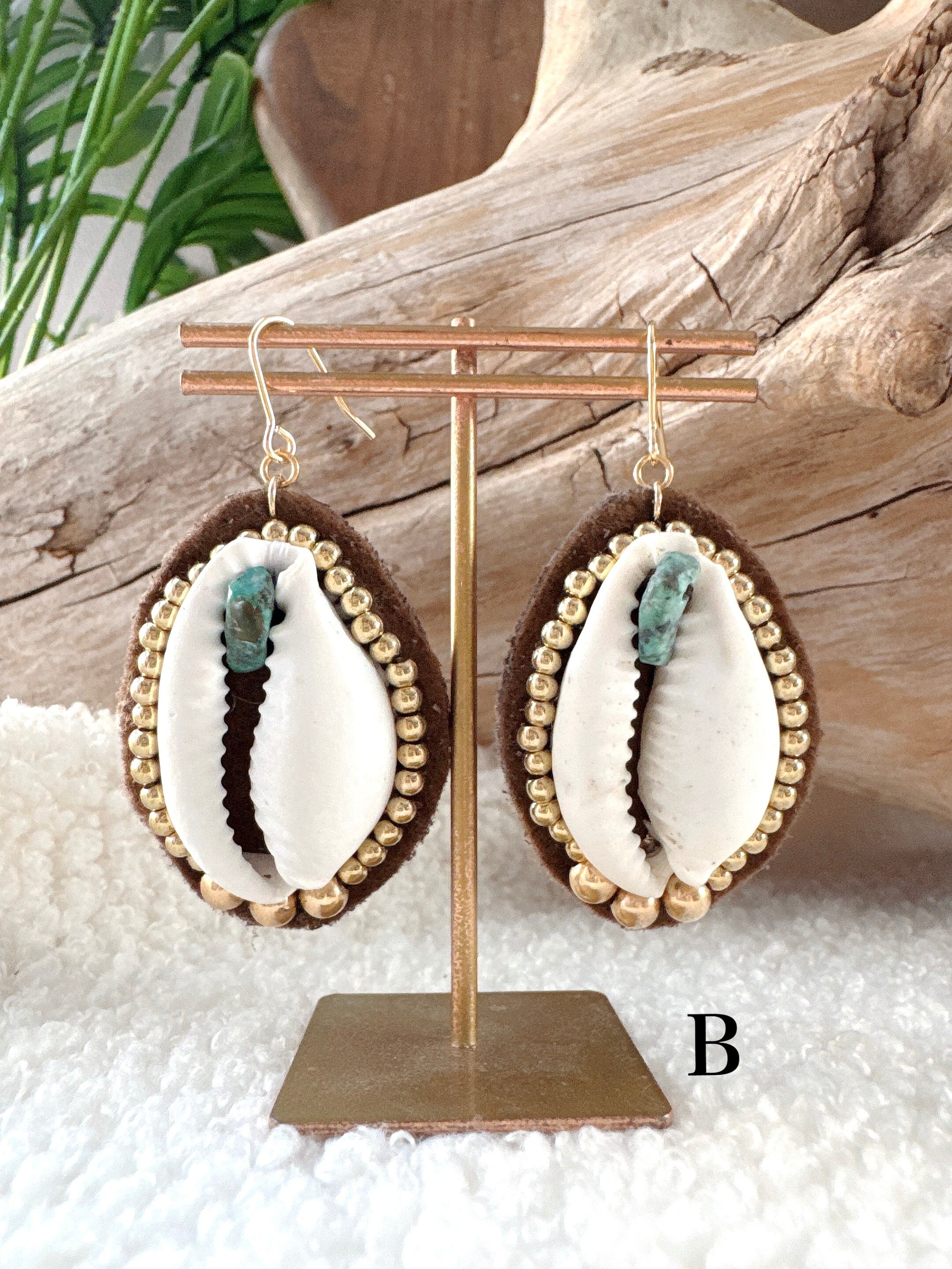 少し大ぶりなサイズのタカラガイを使用したピアスです。