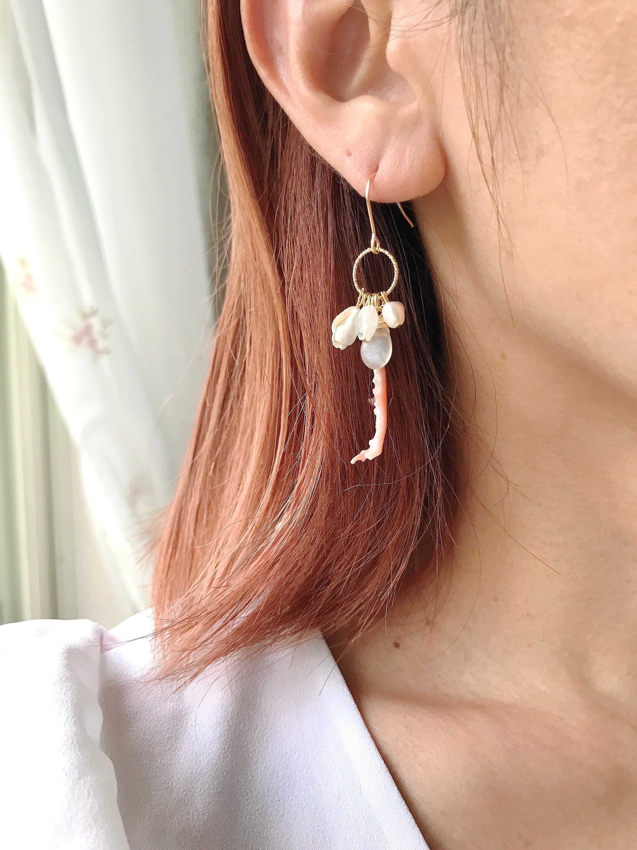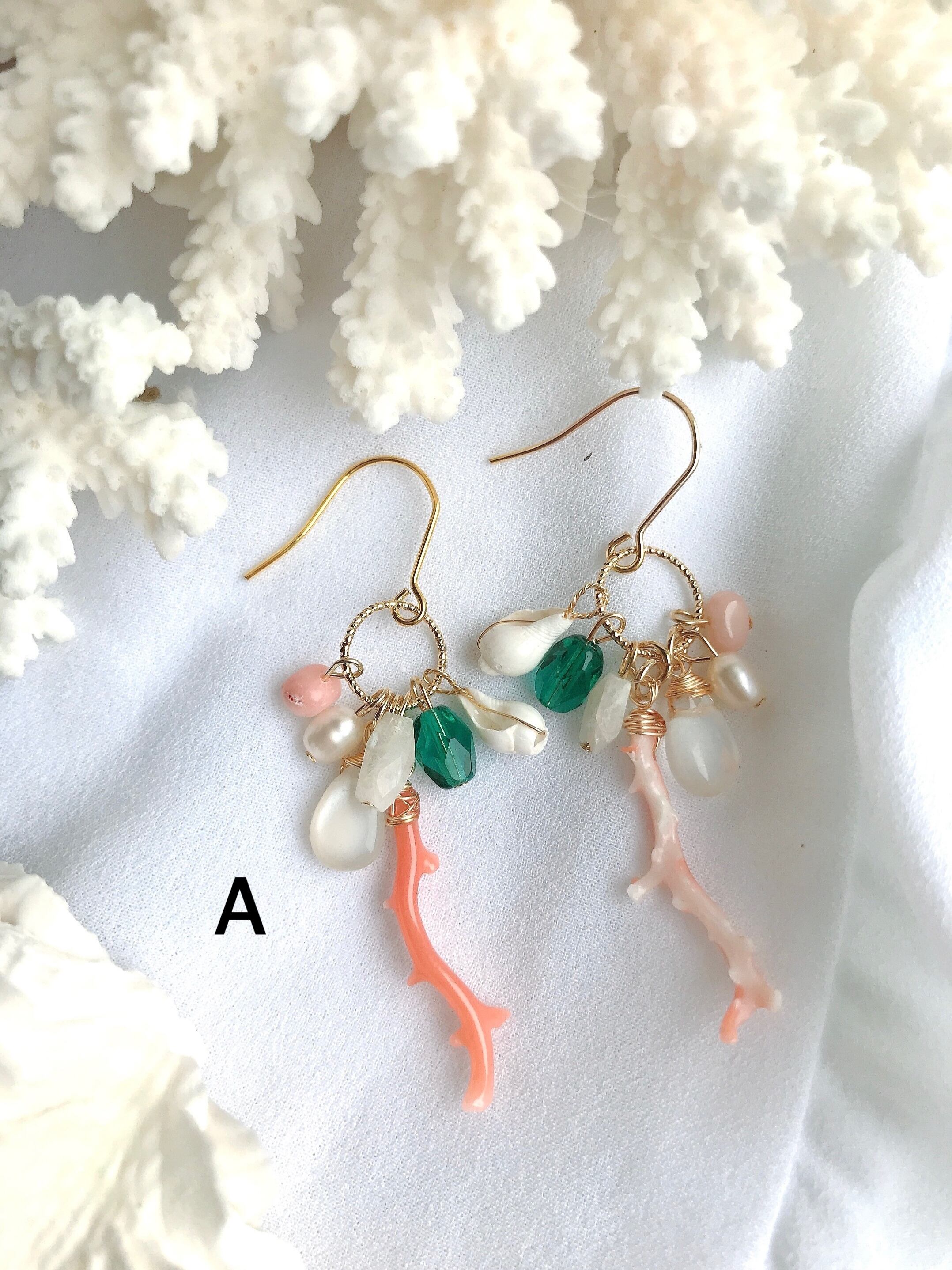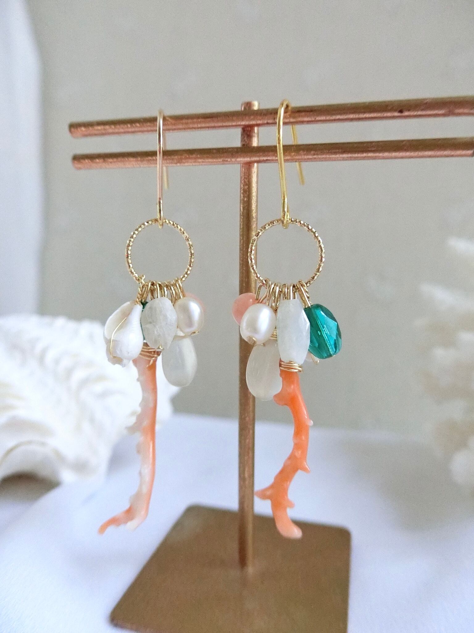 3種 枝珊瑚のジャラジャラミニフープピアス