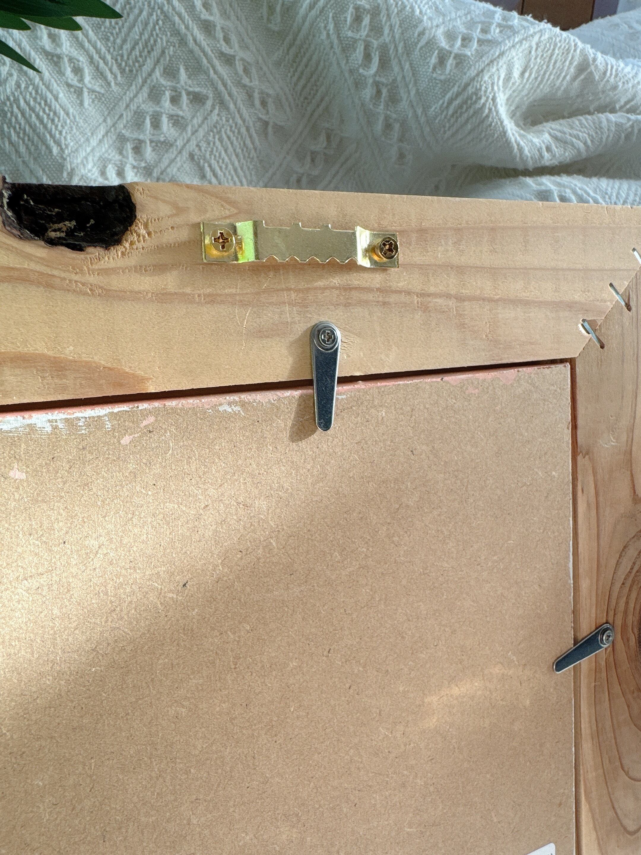 フレーム裏に引っ掛け金具を取り付けてあるのでそのまま壁にかけてお使い頂けます⭐︎