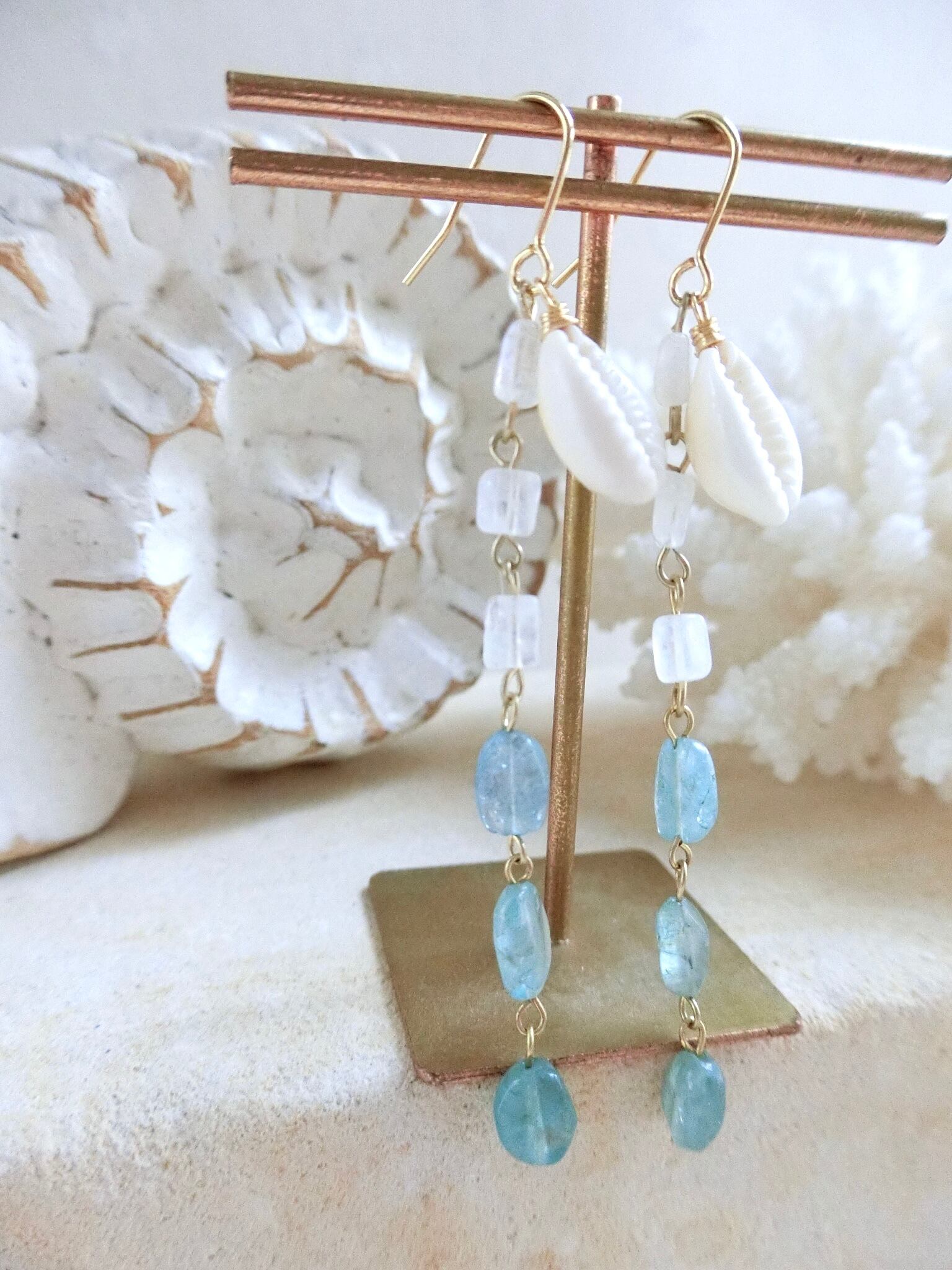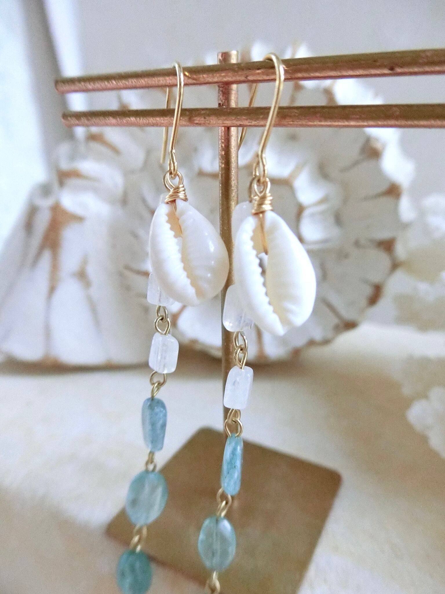 ポイントにタカラガイを耳元から少しぶら下がるようなデザインで合わせました。