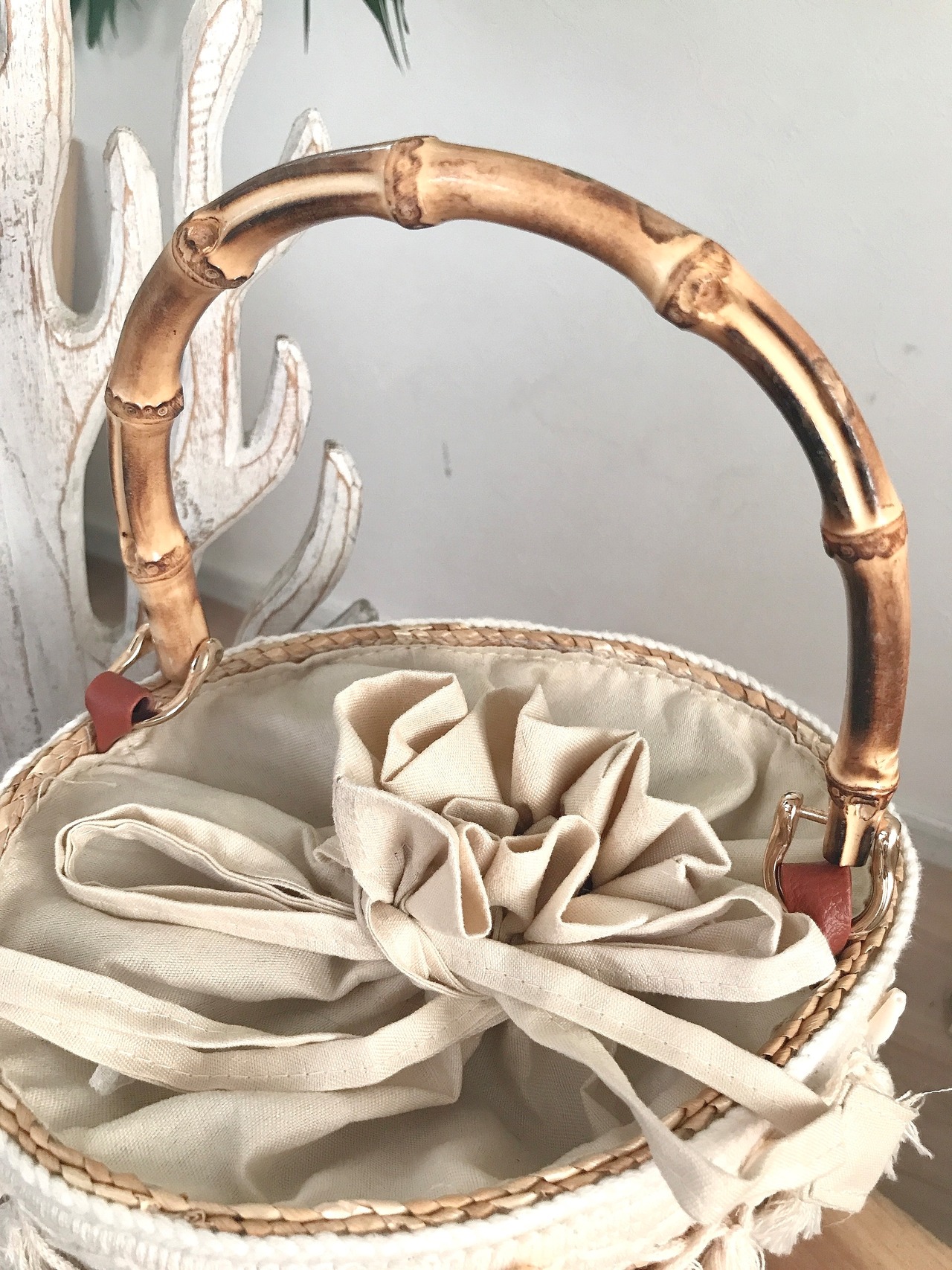 収納力も抜群なバケツ型バックにバンブーのハンドル、更にシェルのタッセルなど贅沢な組み合わせ⭐︎