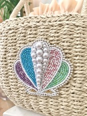 3色 シェルビーズ刺繍カゴバッグ